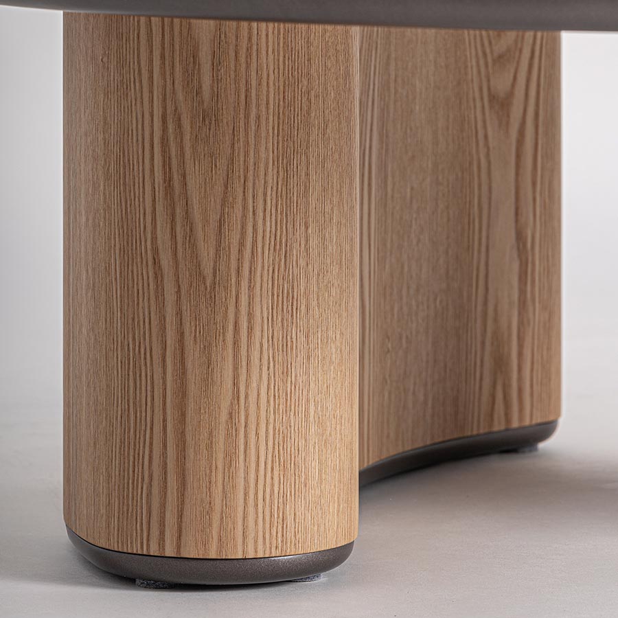 Mesa de centro Leneo de estilo contemporáneo fabricado en madera dm en color marrón claro combinado con madera contrachapada en color marrón. Producto desmontable.