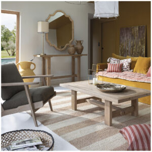 Nuestra línea MARCELLE encaja naturalmente en todos los estilos de interior. Esta mesa de centro quedará ideal combinada con otros productos de la línea MARCELLE, como la mesa de comedor. Para completar la decoración de su salón, considere añadir una alfombra de yute y algunos objetos decorativos refinados en colores refinados.
