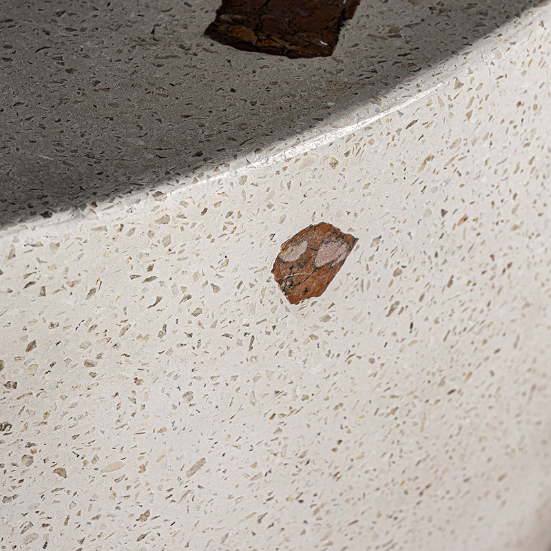 Mesa de centro massa de estilo contemporáneo fabricado en terrazo en color blanco.