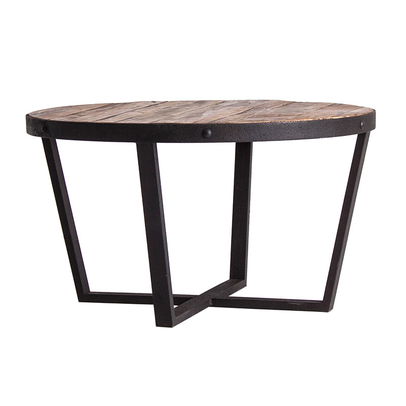 Mesa de centro Minot de estilo industrial fabricado en madera de pino reciclado en color marrón con acabado envejecido.