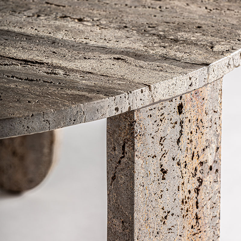 Mesa de centro nohant, en color beige, de estilo art deco. Fabricado en travertino.
