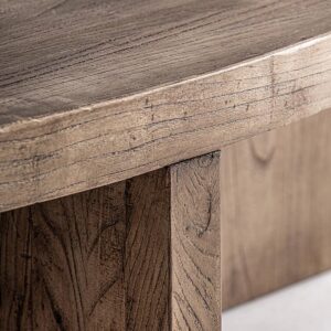 Mesa de centro Norvik de estilo clásico fabricado en madera de olmo en color marrón.