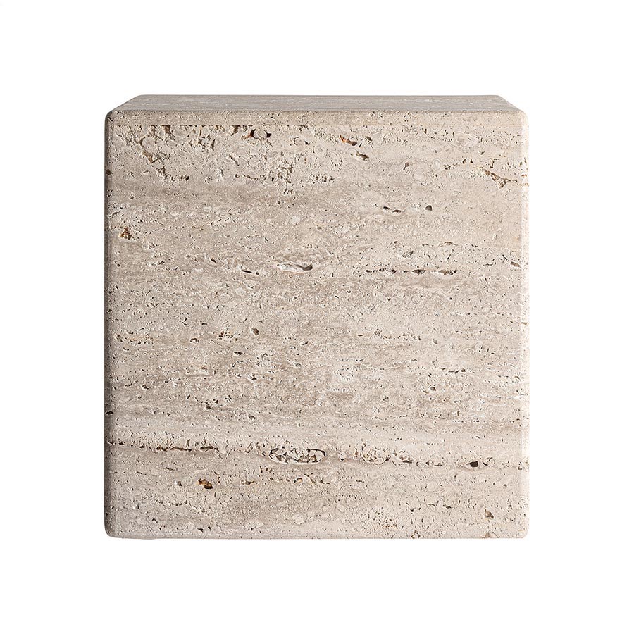 Mesa de centro Rapolano de estilo art deco fabricado en travertino en color beige.