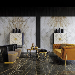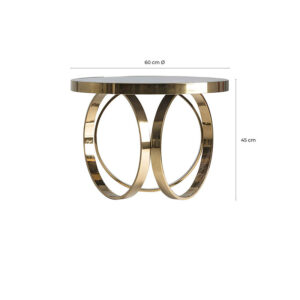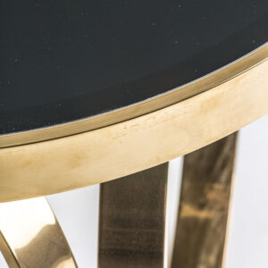Mesa de centro reda de estilo clásico fabricado en espejo en color negro combinado con acero en color oro y vidrio. Producto desmontable.