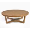 Mesa de centro redonda con madera de roble natural y cristal transparente. Ideal para hacer set para amplios espacios de sofás con otros tamaños de la colección MOREI. Líneas curvas para espacios sofisticados.