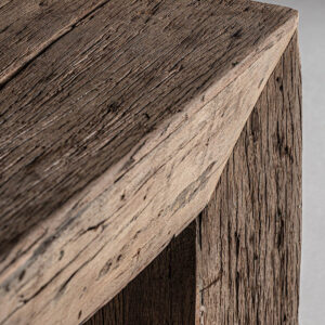 Mesa de centro samsun de estilo étnico fabricado en madera recuperada en color marrón con acabado envejecido. Varias maderas: pino mango teka acacia.