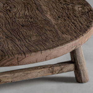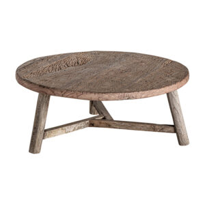 Mesa de centro samsun de estilo étnico fabricado en madera de pino reciclado en color marrón con acabado envejecido combinado con madera de teka reciclada y madera de mango reciclada. Acacia reciclada.