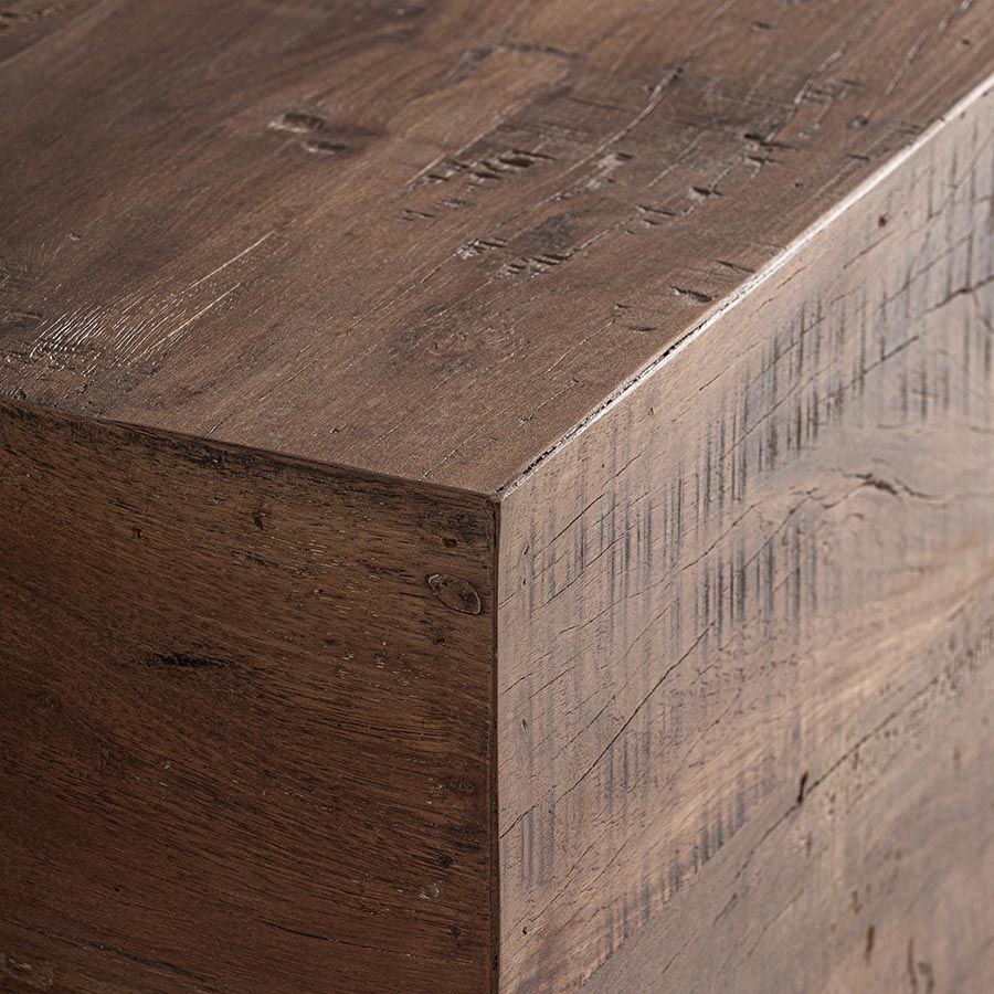 Mesa de centro Selby de estilo rústico fabricado en madera recuperada en color marrón con acabado natural.