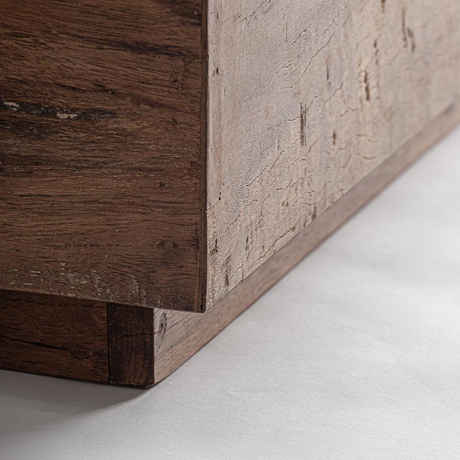 Mesa de centro samsun de estilo étnico fabricado en madera recuperada en color marrón con acabado envejecido. Varias maderas: pino mango teka acacia.