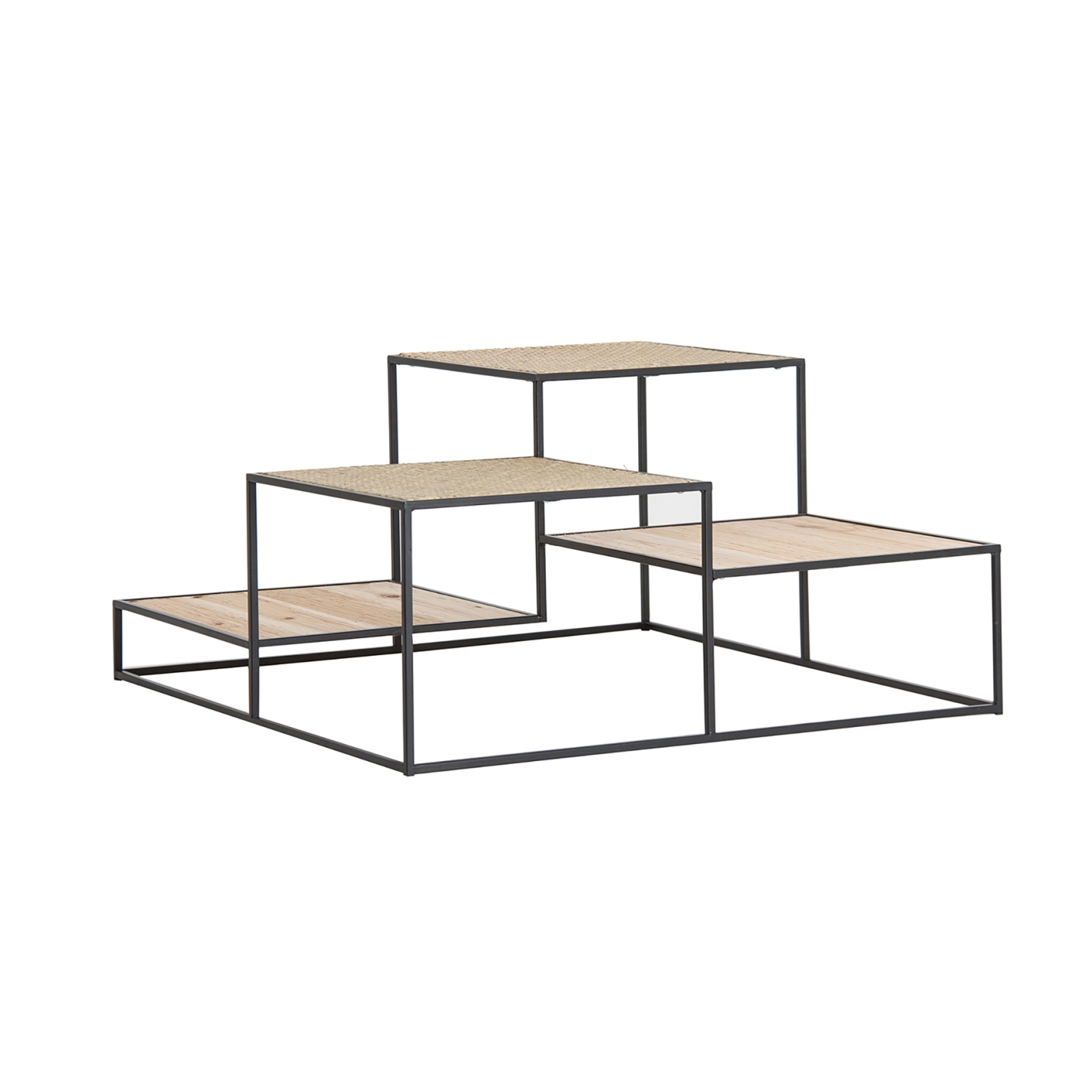 La colección Sibota se caracteriza por la sencillez de sus diseños y sus líneas rectas. Dentro de esta amplia colección tenemos la mesa de centro Sibota elaborada en madera de abeto y hierro con un diseño de cuatro bloques a diferentes alturas. Inspirada en el estilo industrial, esta mesa es muy versátil para combinar con cualquier tipo de muebles. Medida: 80X80X40 cm.