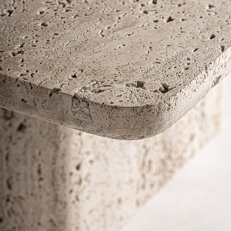 Mesa de centro theuville de estilo art deco fabricado en travertino en color beige. Producto desmontable.