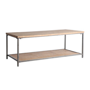 MESA DE CENTRO TIRKANE, EN COLOR GRIS/NATURAL, DE ESTILO INDUSTRIAL. FABRICADO EN HIERRO, COMBINADO CON MADERA DE ABETO. PRODUCTO DESMONTABLE.