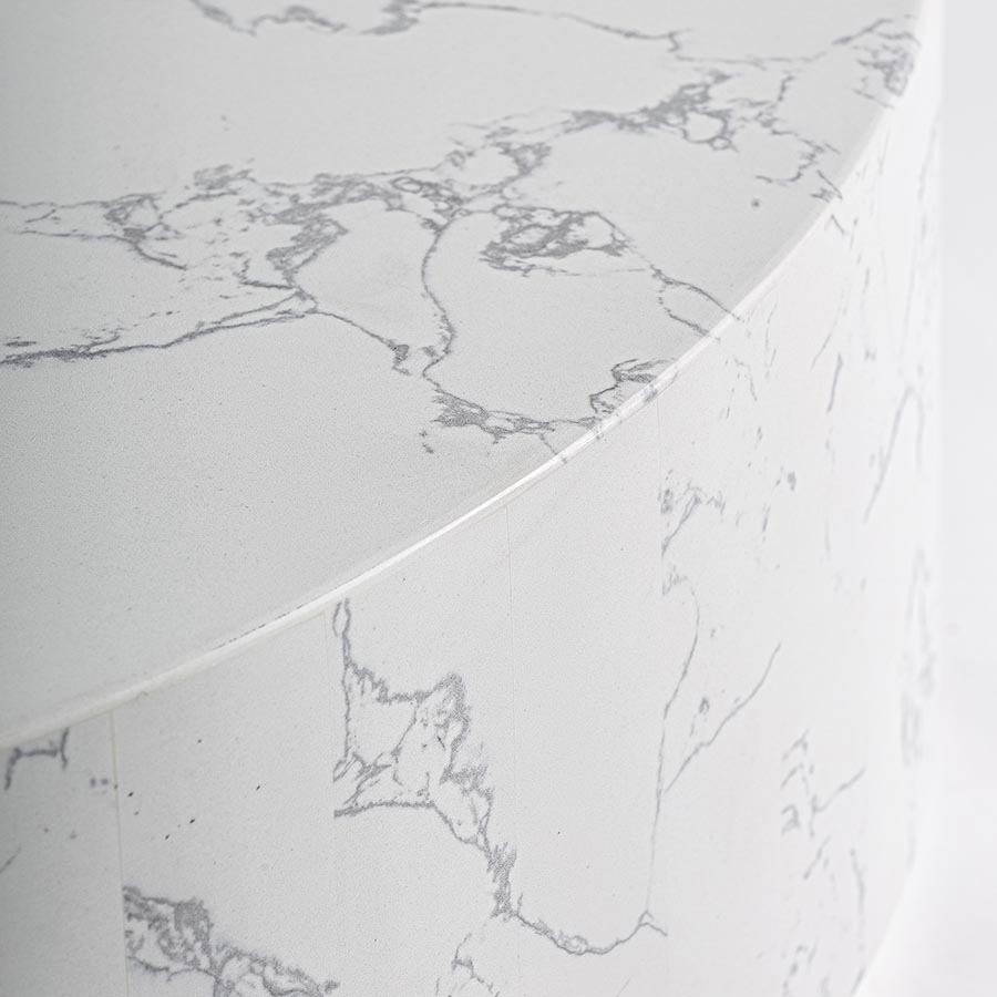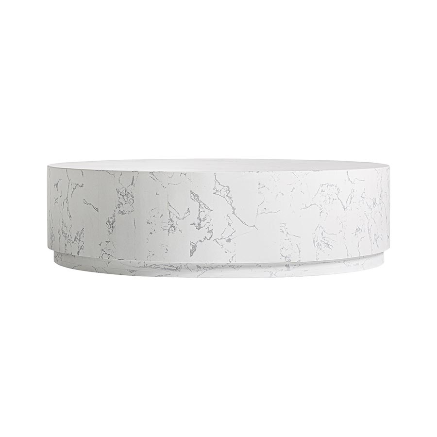 Mesa de centro Vonnas de estilo art deco fabricado en piedra sinterizada en color blanco.