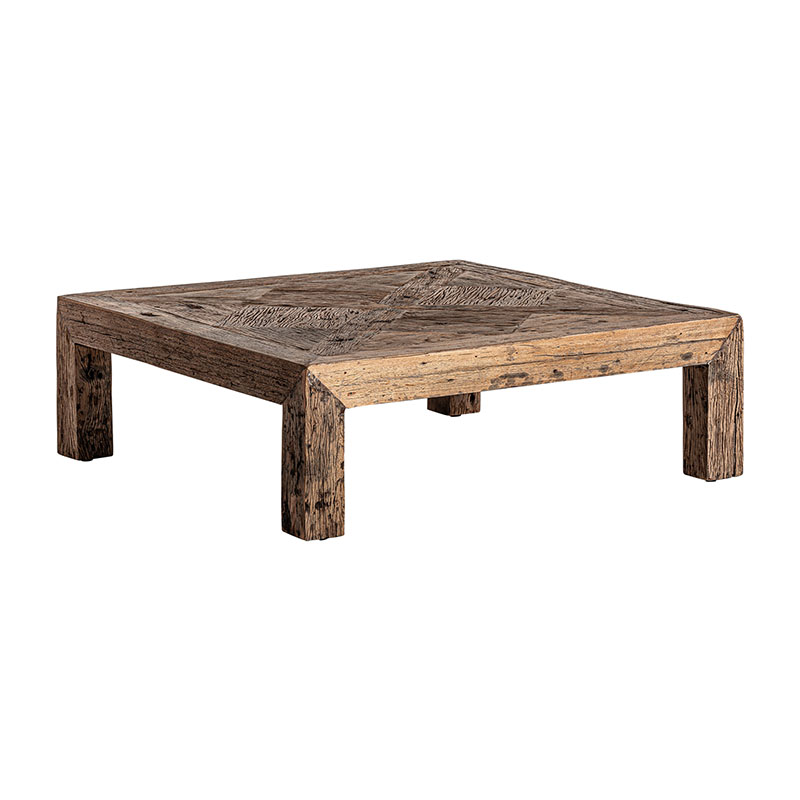 Mesa de centro walding de estilo nórdico fabricado en madera recuperada en color marrón.