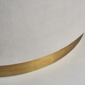 Mesa de centro Zerbst de estilo art deco fabricado en hierro en color blanco combinado con mármol en color negro y madera dm en color oro. Producto desmontable.