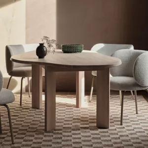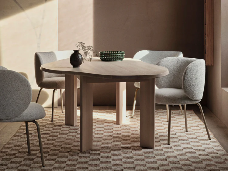 La mesa de comedor Tarn está meticulosamente elaborada con madera maciza de haya certificada FSC™. La mesa presenta una forma fluida y orgánica, bellamente contrastada por un borde biselado y cuatro patas anchas y lineales, creando una pieza visualmente impactante. Perfecto para su comedor o cocina, crea sin esfuerzo un ambiente cálido y acogedor para sus comidas.