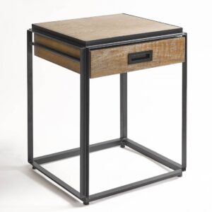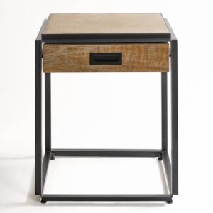 Os presentamos esta estupenda mesa auxiliar o de noche, que causará sensación en un dormitorio contemporáneo o vintage. Las líneas rectas y depuradas, con base de metal negro, que le aportan un estilo moderno y aéreo. Caja de madera de roble. Gracias a su tamaño, esta mesa de noche encajará de maravilla en los espacios reducidos.