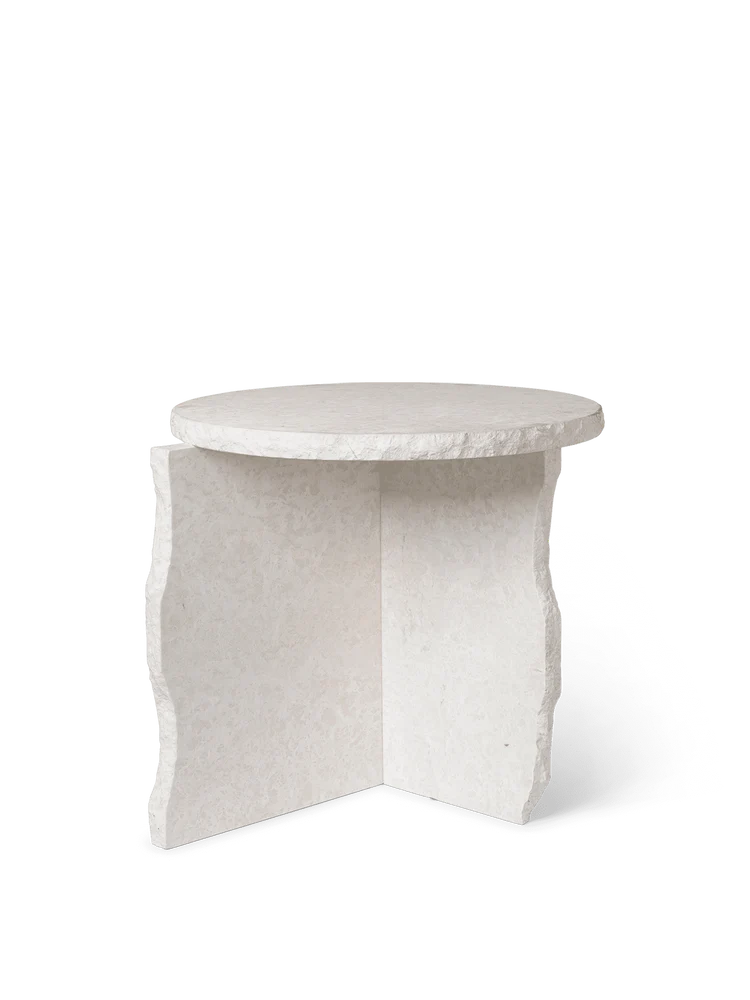 Ya sea que la use como mesa auxiliar o como escultura decorativa, la Mesa Escultural Mineral causa una impresión impactante en su hogar. Realizada en mármol 100% bianco curia, es una auténtica pieza de declaración, y con los bordes rotos a mano con un cincel, cada mesa es única. Caracterizado por su distintiva forma de T, bordes ásperos y superficies pulidas en contraste, tiene una expresión cruda y brutalista que provocará conversación.