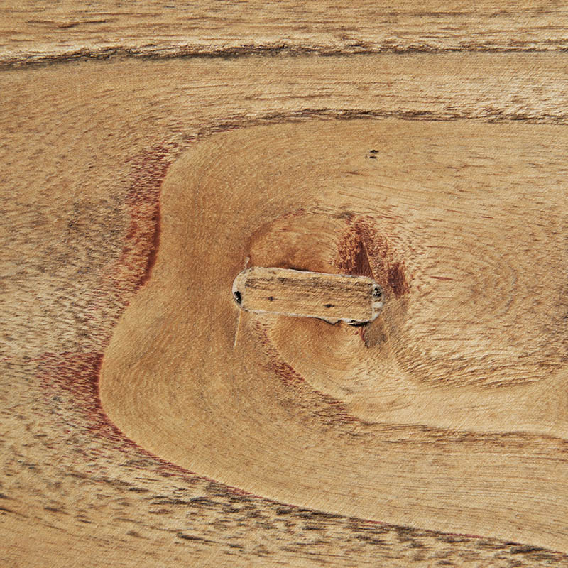 • Mesa extensible Berca de estilo clásico fabricado en madera de olmo reciclado en color marrón. Madera proveniente de antiguas puertas por lo que puede haber imperfecciones. . Producto desmontable extensible.