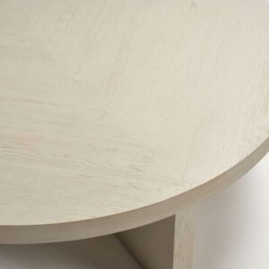Mesa redonda de madera de roble en blanco grisáceo. Estilo moderno y atemporal ideal para completar tu salón. Combina a la perfección con los nuevos modelos TAK y XEI.