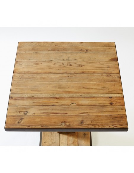 Mesa de madera de pino con acabados en metal. Mesa de comedor  sencilla pero muy elegante de estilo industrial. Es una mesa de comedor perfecta para una decoración auténtica, que te ofrecerá sabrosos momentos en compañía. Esta mesa te ayudará a crear un ambiente sólido y cálido, gracias a sus lineas rectas y depuradas. Tamaño ideal para cualquier decoración. Combínala con sillas de piel o metal y crea un ambiente Chic y actual.