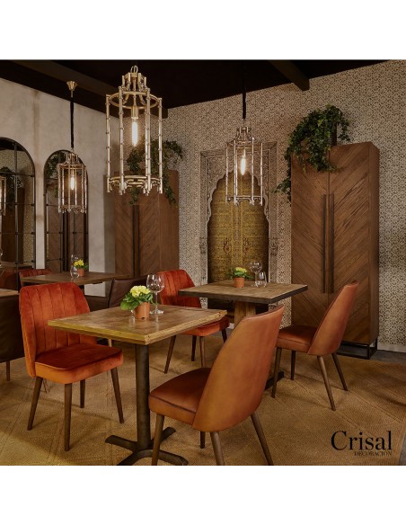 MESA DE COMEDOR ROBLE Y METAL DORADO