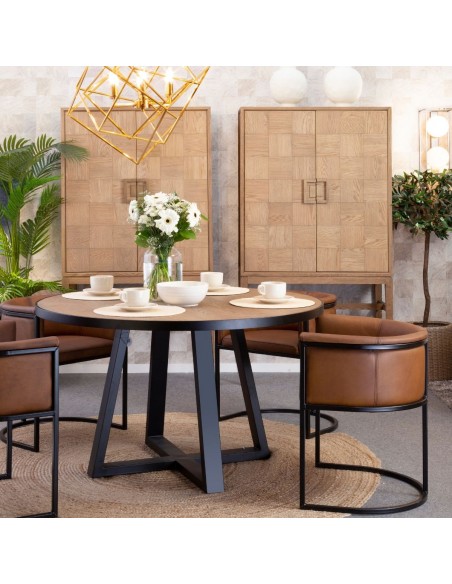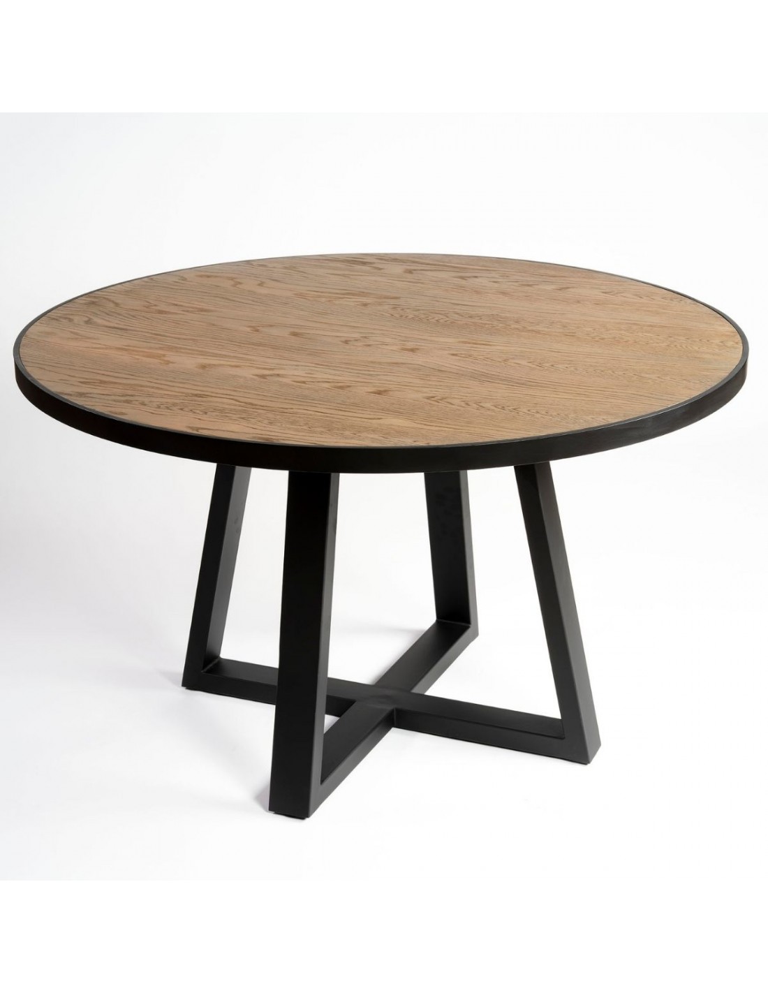 MESA DE COMEDOR ROBLE Y METAL NEGRO