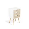 Mesita fabricada en MDF color blanco y patas de pino en color natural.