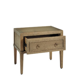 Gracias a su elegante diseño, la mesita de noche ARIANNE aportará un toque chic y atemporal a la decoración de tu habitación. Su espacioso cajón te permitirá tener tus pertenencias y libros siempre al alcance.