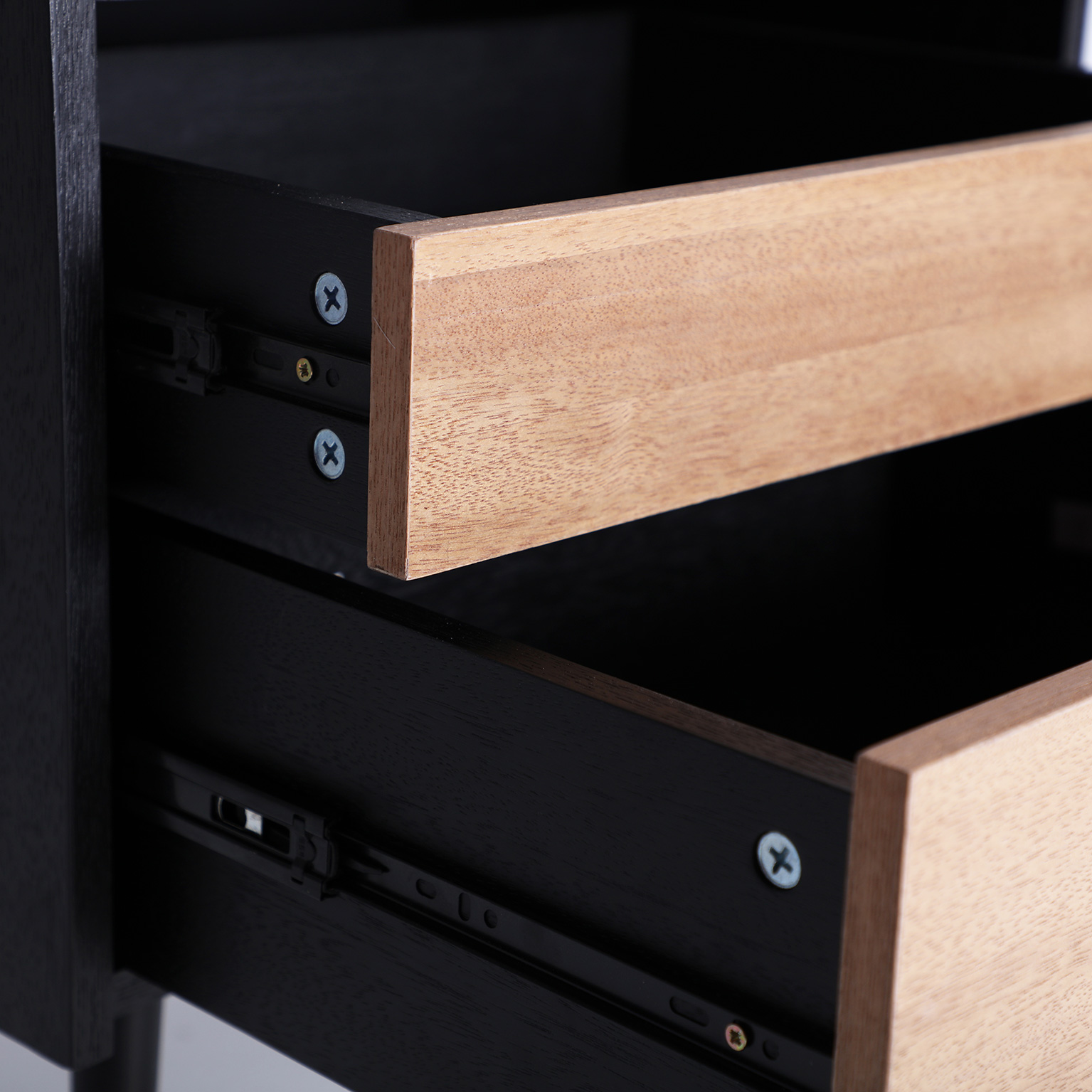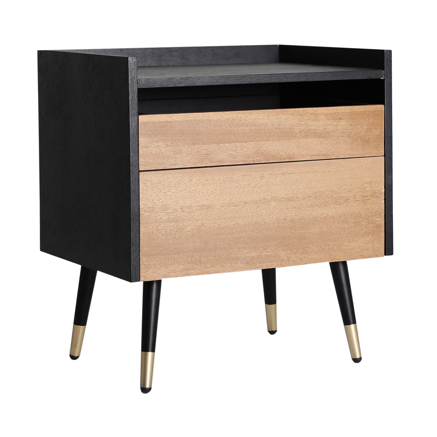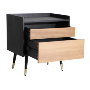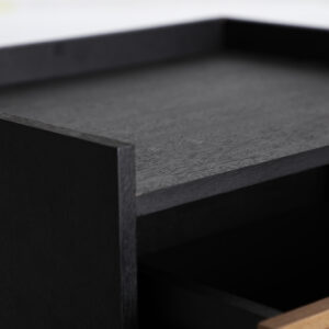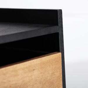 MESITA BRUSSA, EN COLOR NEGRO/NATURAL, DE ESTILO CONTEMPORÁNEO. FABRICADO EN MADERA DM, COMBINADO CON HIERRO. PRODUCTO DESMONTABLE.