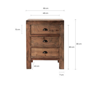 Mesita de noche cotard en color marrón natural de estilo nórdico. Fabricado en madera recuperada.