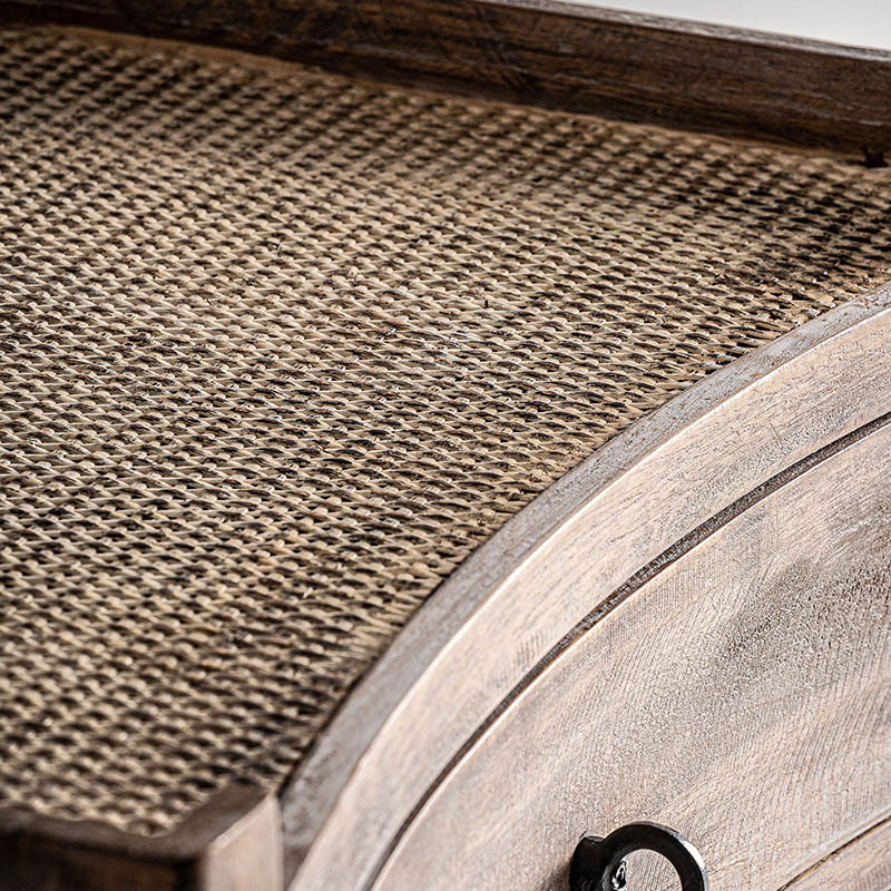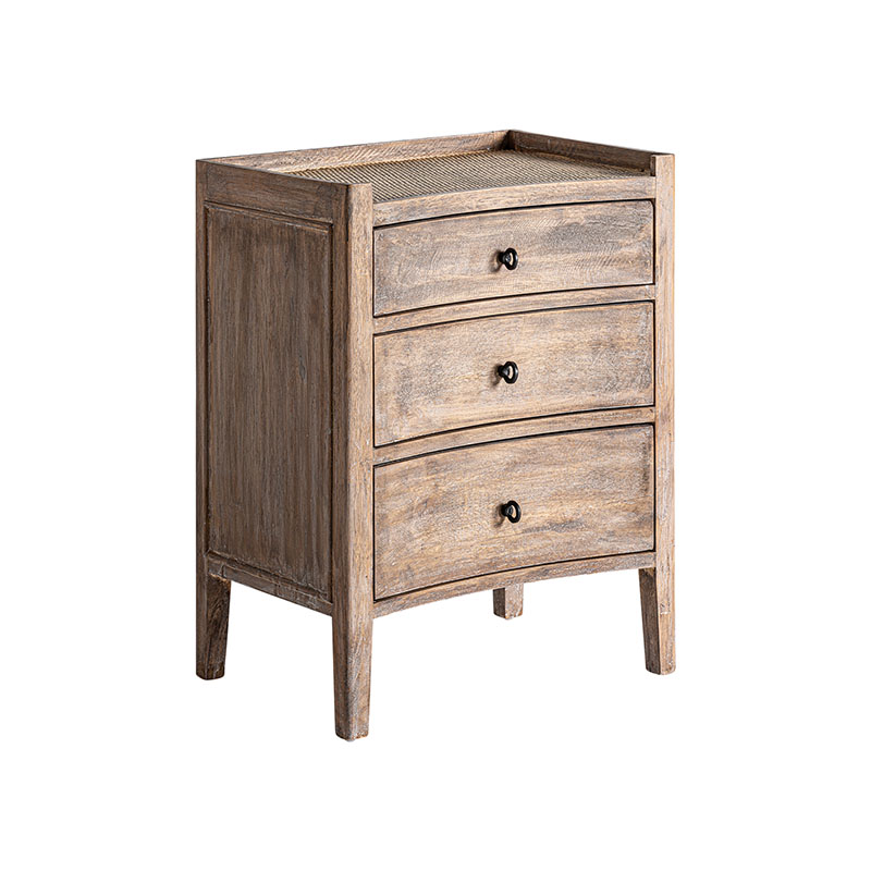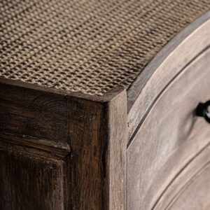 Mesita de noche lahn, en color blanco/marrón envejecido, de estilo provenzal. Fabricado en madera de abeto, combinado con ratán.