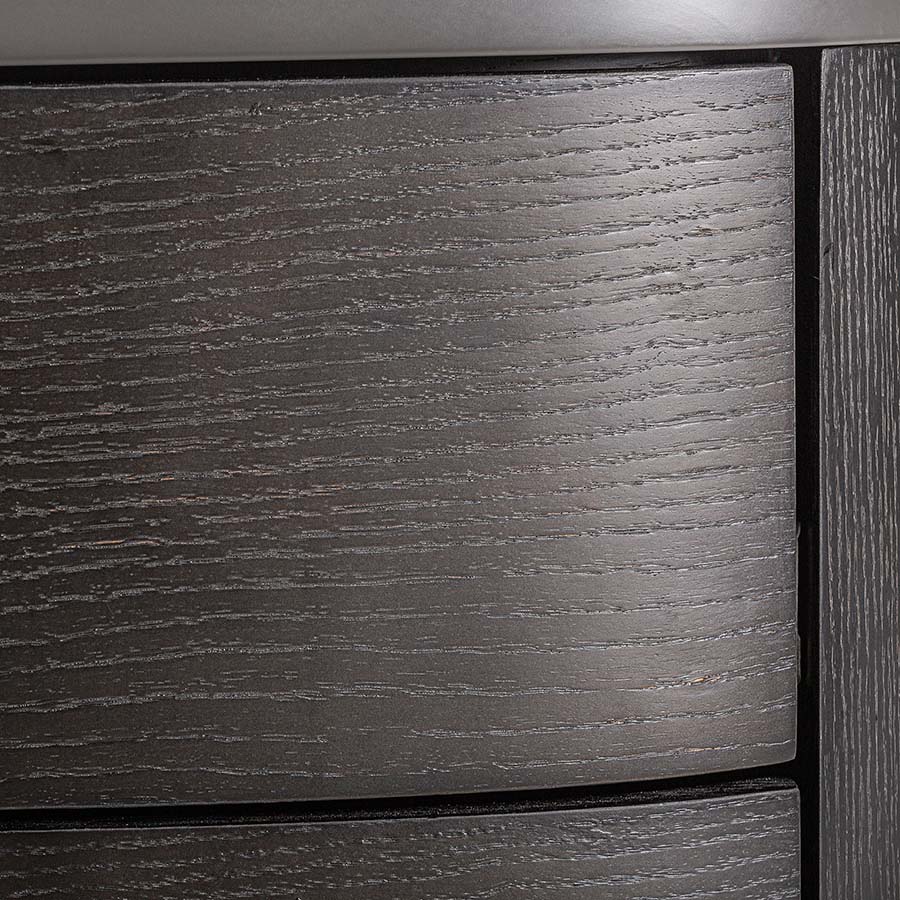 Mesita de noche liestal de estilo art deco, fabricado en madera dm en color negra, combinado con chapa de roble en color gris.