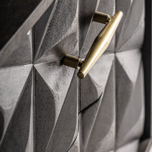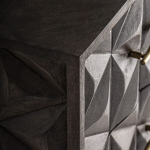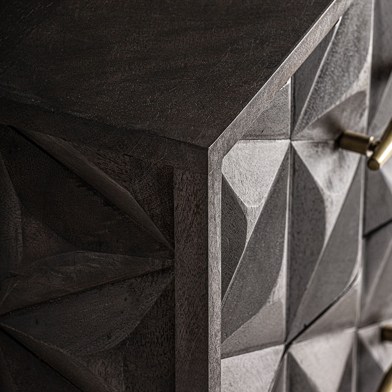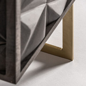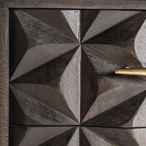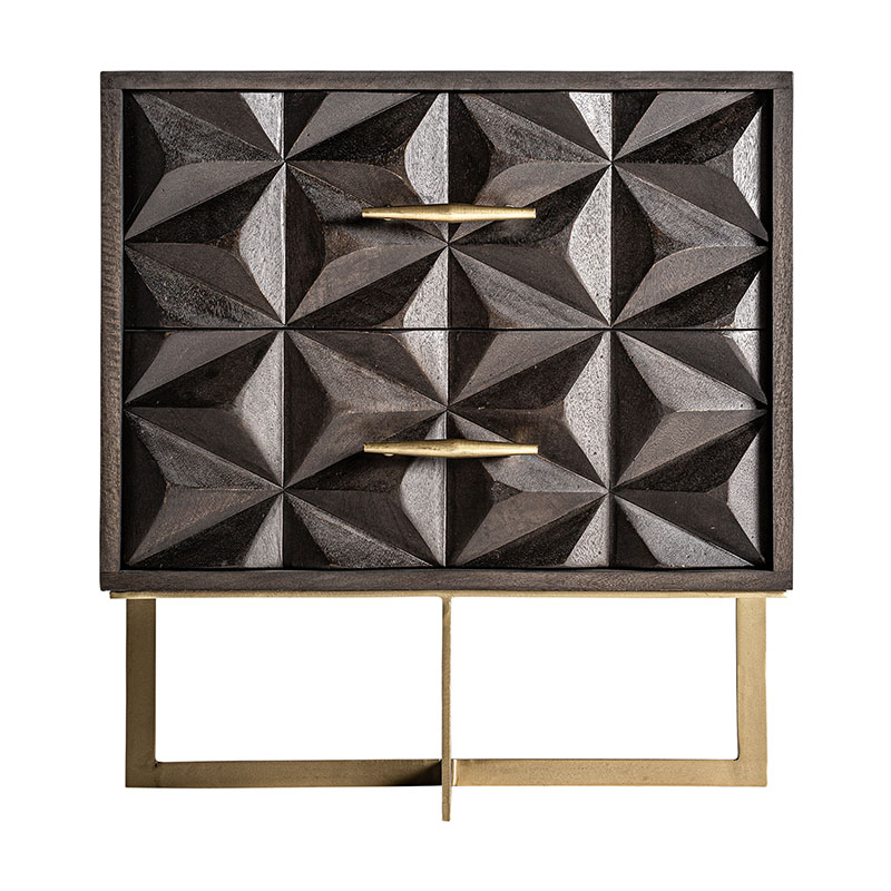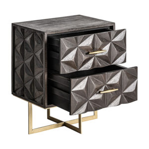 Mesita de noche tully de estilo art deco fabricado en madera de mango en color marrón combinado con latón en color oro.