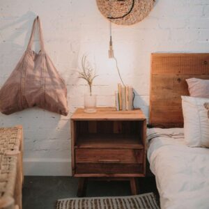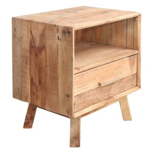 Fabricada en madera maciza de pino reciclado con 1 cajón.