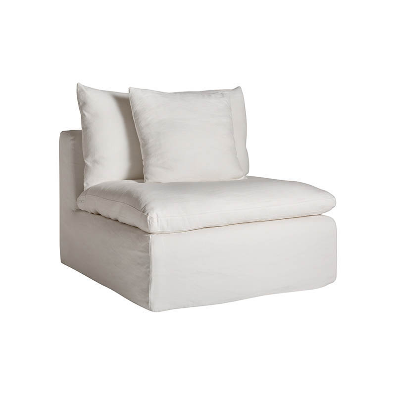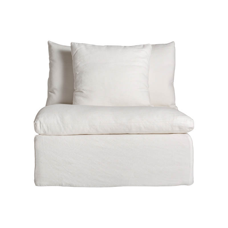 Módulo sofá central agde en color blanco liso de estilo art deco. Fabricado en lino combinado con algodón y espuma. Producto desmontable desenfundable. Compatible con: 35111 35113 35114.