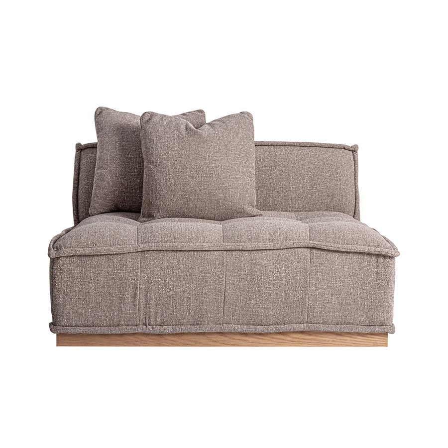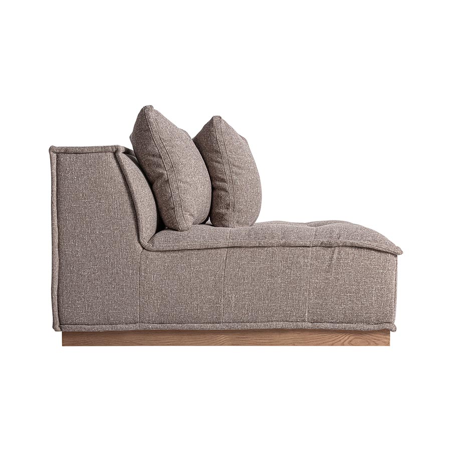 Módulo sofá central Aspach de estilo contemporáneo fabricado en poliéster en color marrón con acabado jaspeado combinado con madera de pino en color marrón.