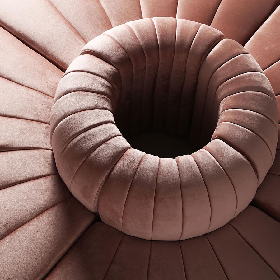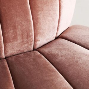 Módulo sofá central garsten de estilo art deco fabricado en madera de pino en color marrón combinado con madera dm y terciopelo en color rosa palo.