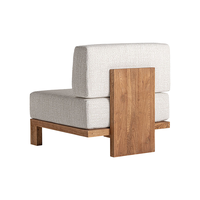 Módulo sofá central testa de estilo colonial fabricado en madera de teka reciclada en color marrón con acabado natural combinado con polipropileno reciclado en color tonos en marrón con acabado jaspeado y espuma. Producto desmontable desenfundable.