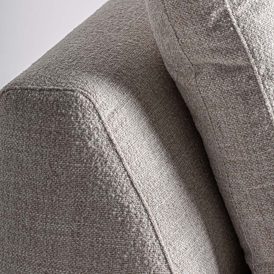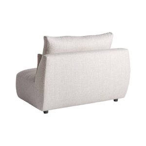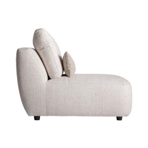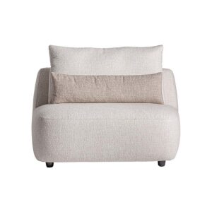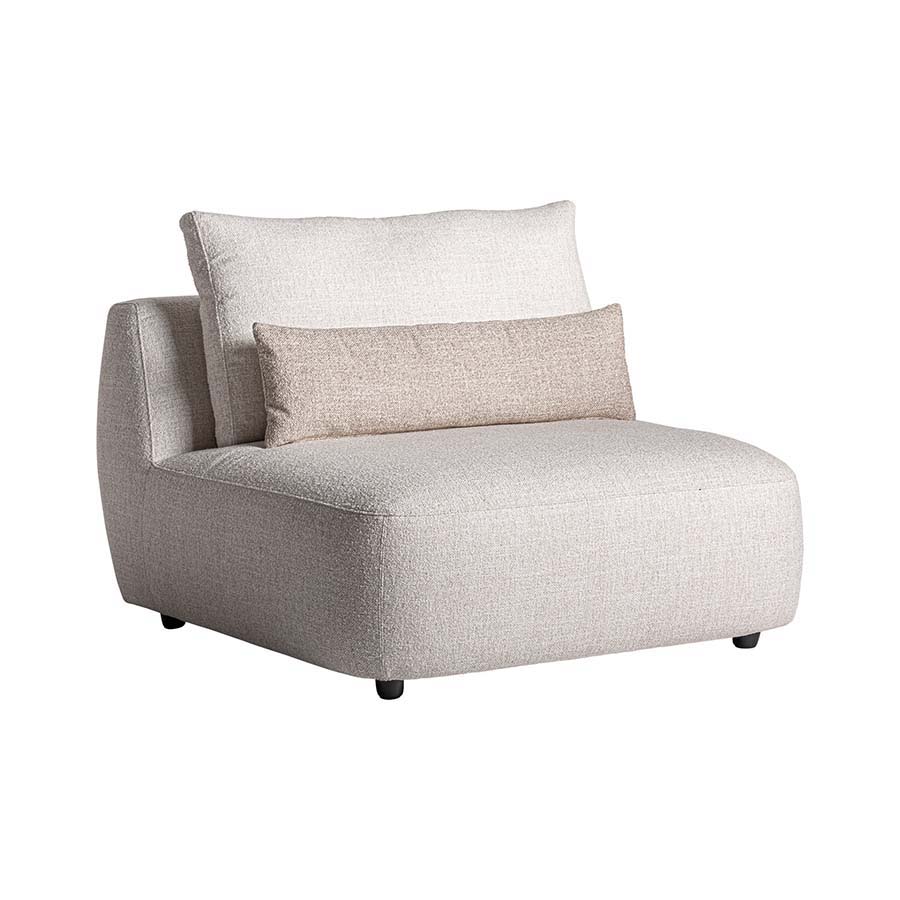 • Módulo sofá central Wingles de estilo contemporáneo fabricado en madera de alerce en color beige con acabado jaspeado combinado con poliéster en color blanco roto y hierro en color negro. Cojines rellenos de pluma de oca mixta. . Compatible con: 36090 36092.