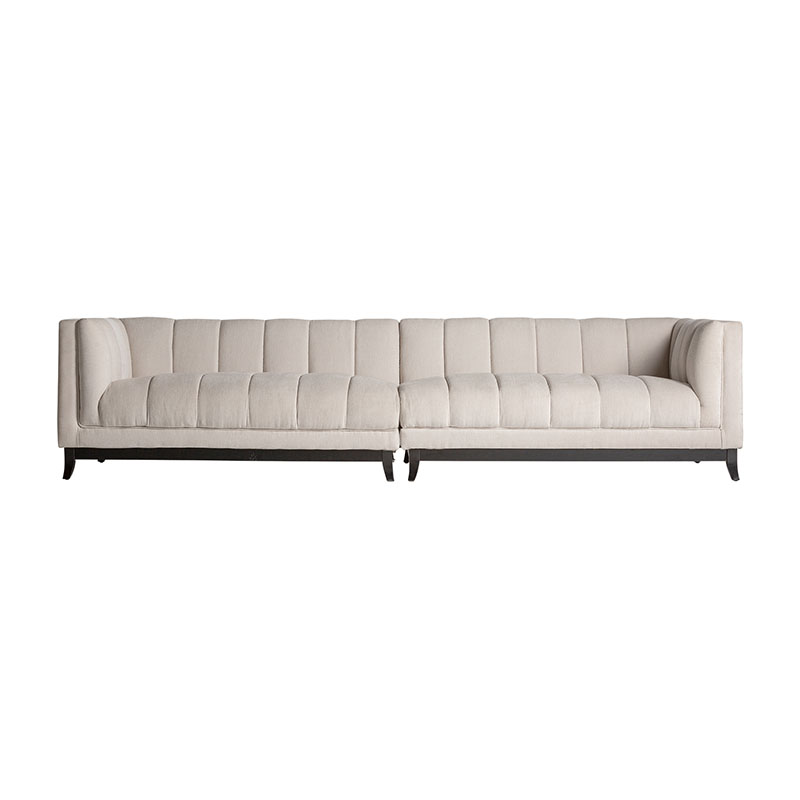 Módulo sofá esquinero Luttach de estilo art deco fabricado en madera de caucho en color negro combinado con madera de pino en color negro y poliéster en color blanco roto. Producto desmontable. Compatible con: 32447.