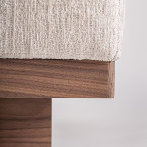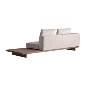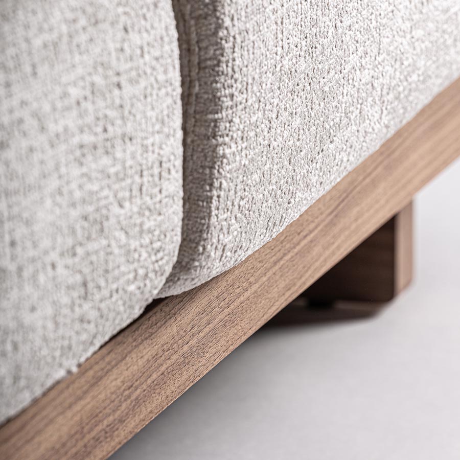 Sofá nara de estilo contemporáneo fabricado en poliéster en color marrón beige combinado con madera roble en color beige. Producto desenfundable.