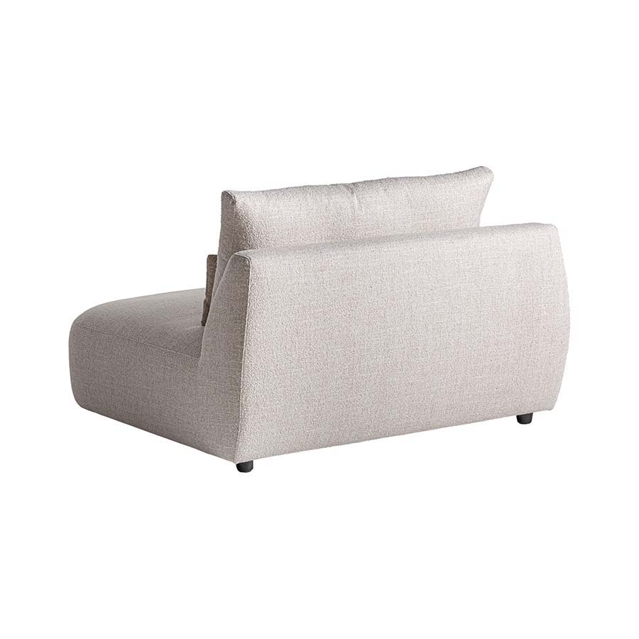 Módulo sofá esquinero wingles de estilo contemporáneo fabricado en madera de alerce en color beige con acabado jaspeado combinado con poliéster en color blanco roto y espuma. Patas de hierro en color negro. Cojines rellenos de pluma de oca mixta. . Compatible con: 36091 36092.