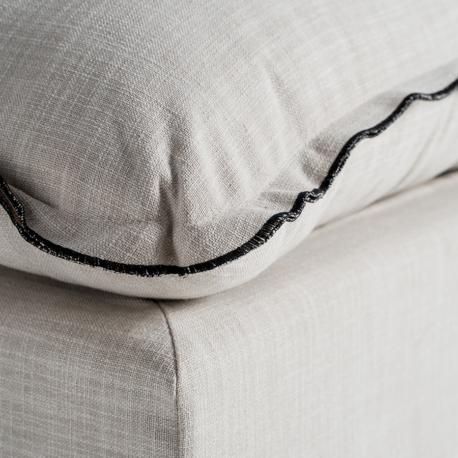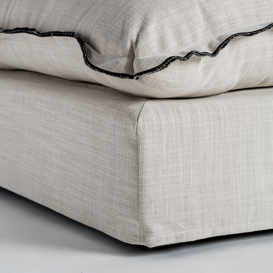 Módulo sofá esquinero Agde de estilo art deco fabricado en lino en color blanco combinado con algodón y espuma. Producto desmontable desenfundable. Compatible con: 35112 35113 35114.