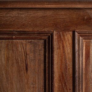 Mostrador agen de estilo colonial fabricado en madera de teka reciclada en color marrón.