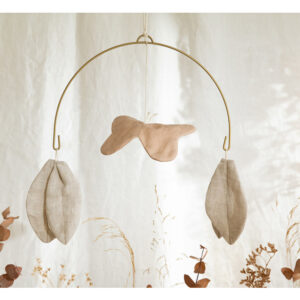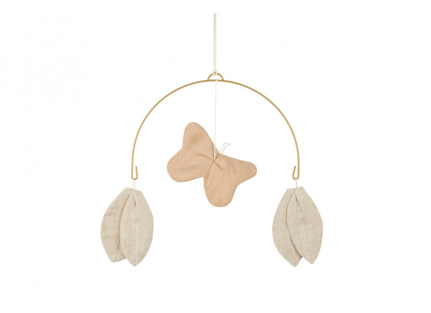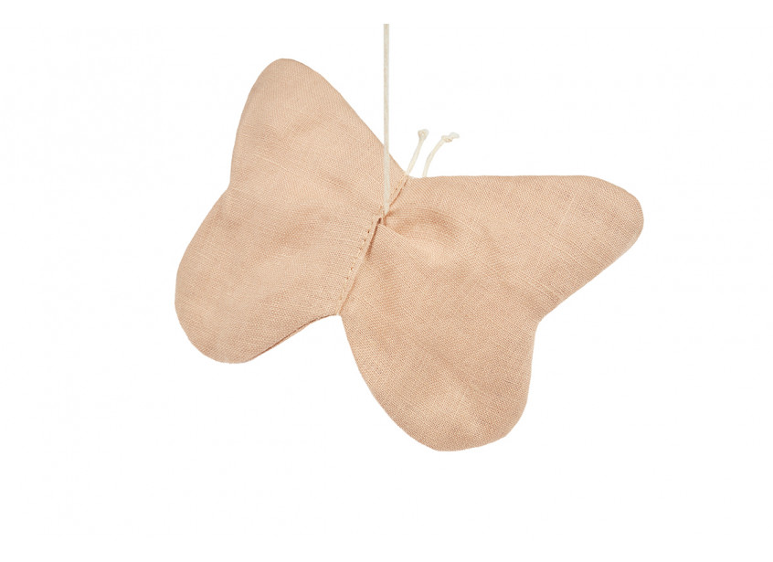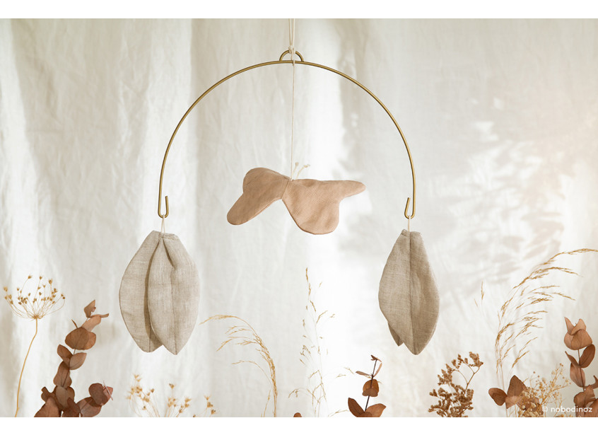 El móvil mariposa de la colección Nobodinoz está fabricado en 100% lino  francés certificado.