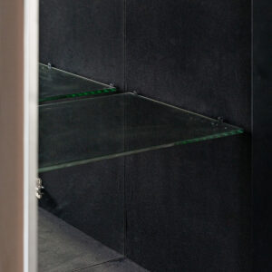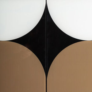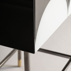 Mueble bar hannes, en color negro/blanco/oro, de estilo art deco. Fabricado en cristal, combinado con hierro y madera dm. Producto desmontable.
