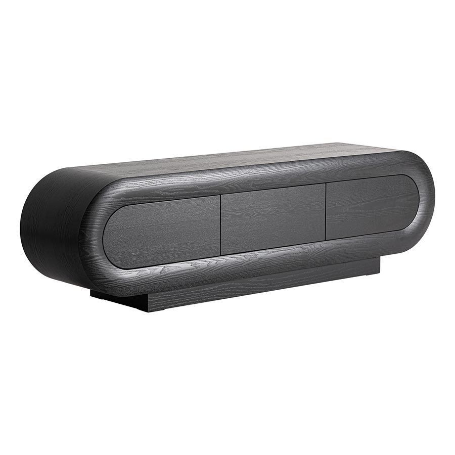 Mueble tv Chamonix de estilo art deco fabricado en madera roble en color negro en color negro.
