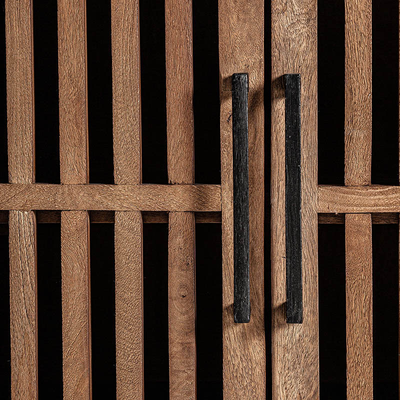 Mueble tv Celle de estilo colonial fabricado en madera de mango en color negro combinado con hierro en color natural.