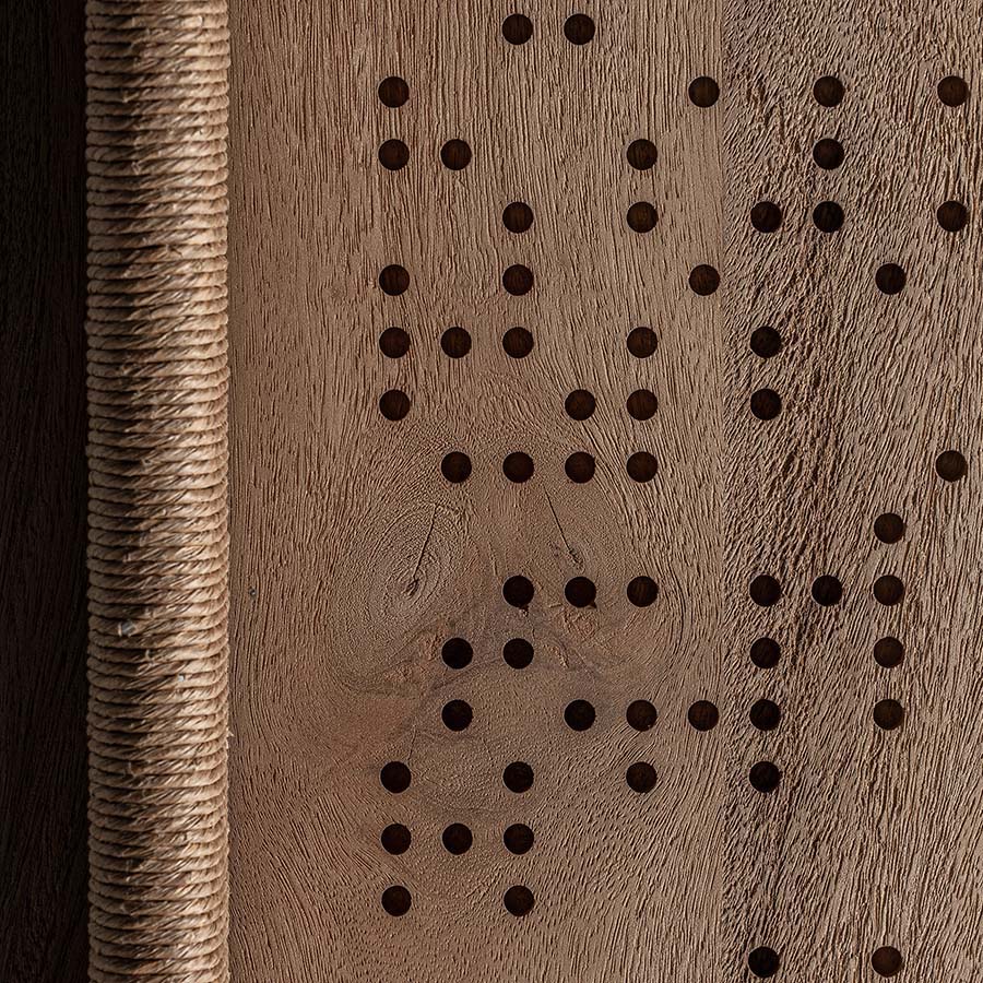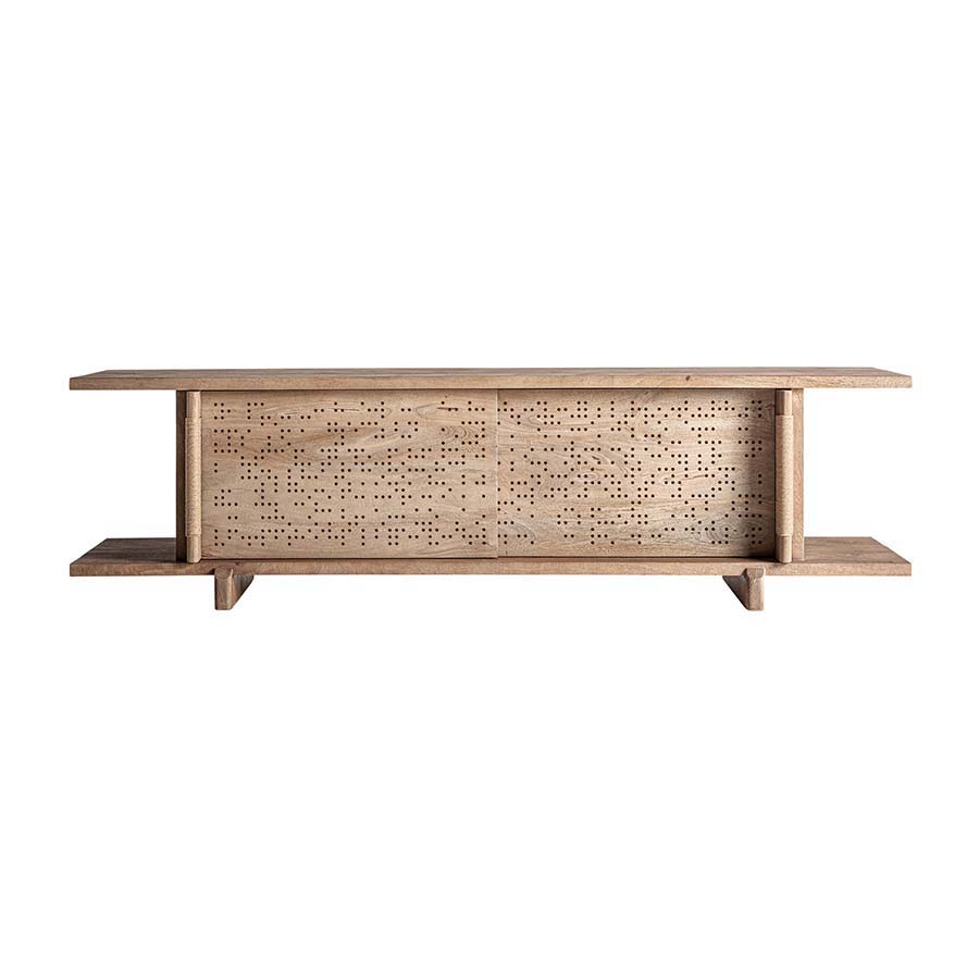 Mueble tv jacquard de estilo contemporáneo. Fabricado en madera de mango en color marrón claro.